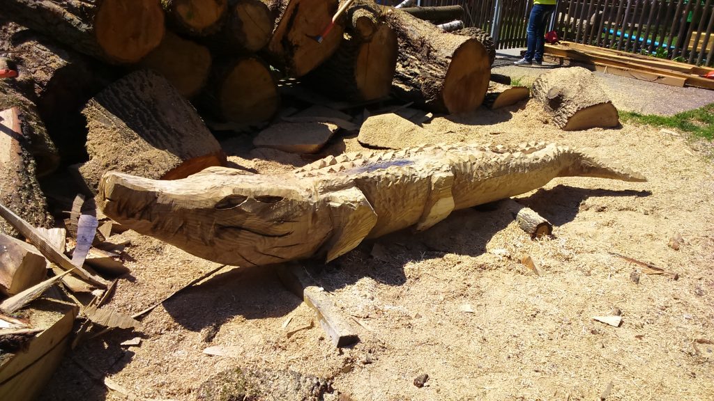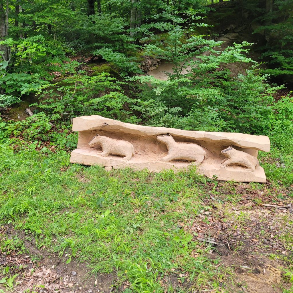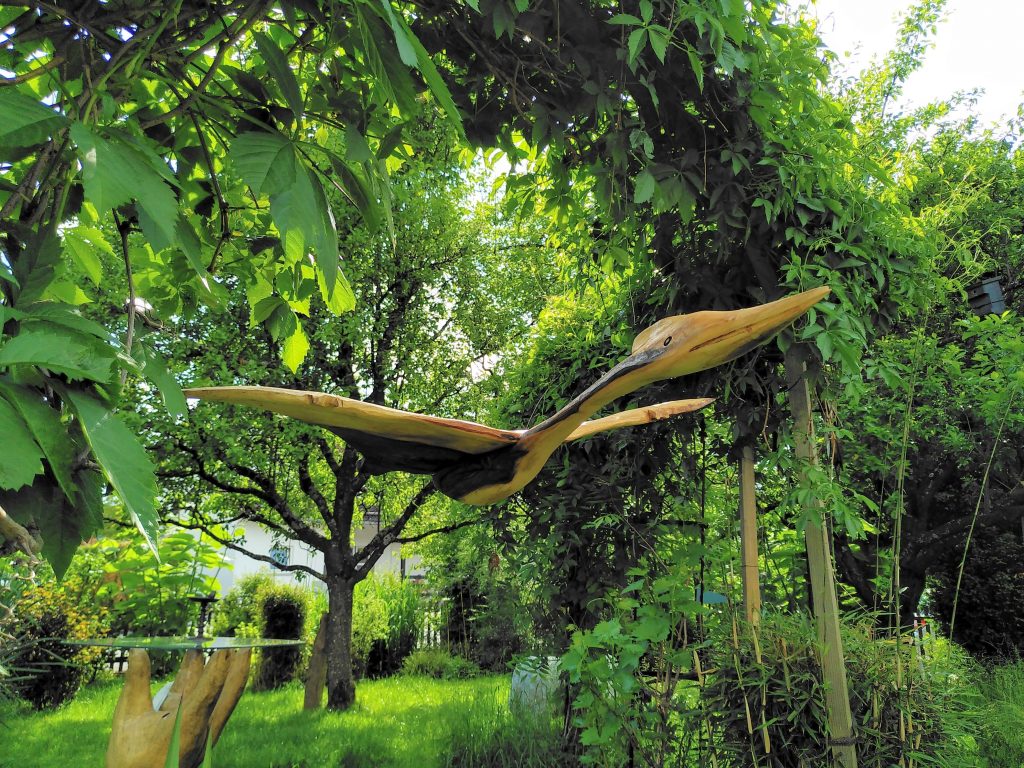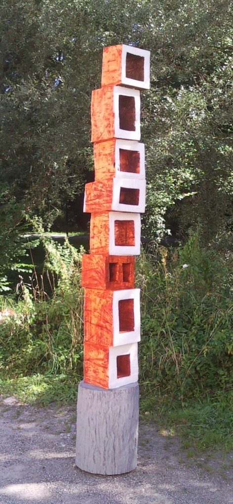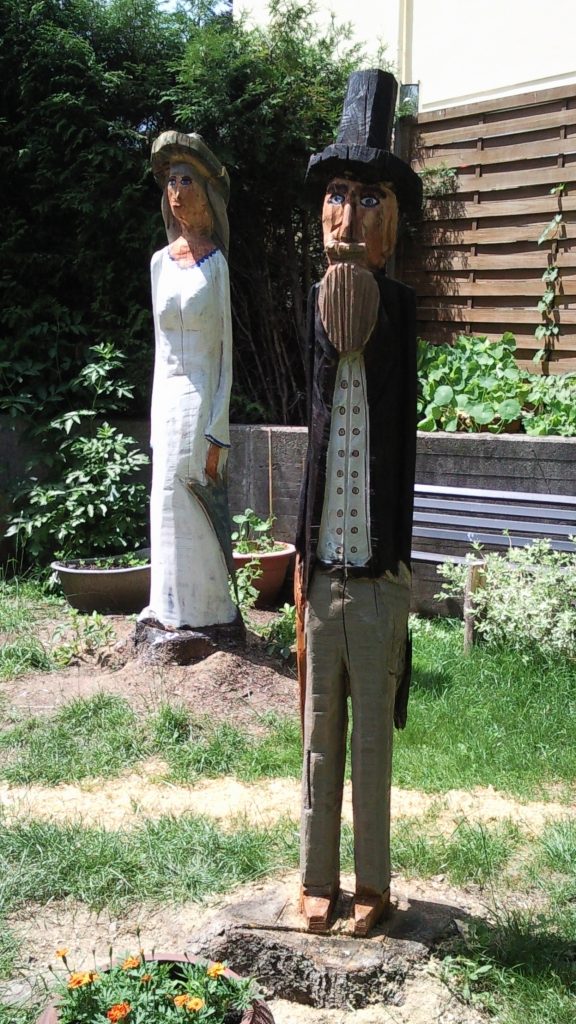 „Gartenbesucher“, Fichtenstümpfe lasiert